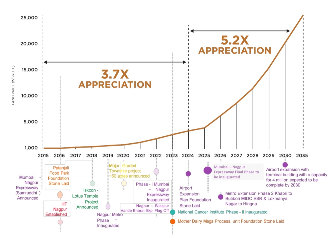 Compared to other major metros, Nagpur’s land prices remain attractive, providing investors with a high-growth potential at a relatively low entry cost.